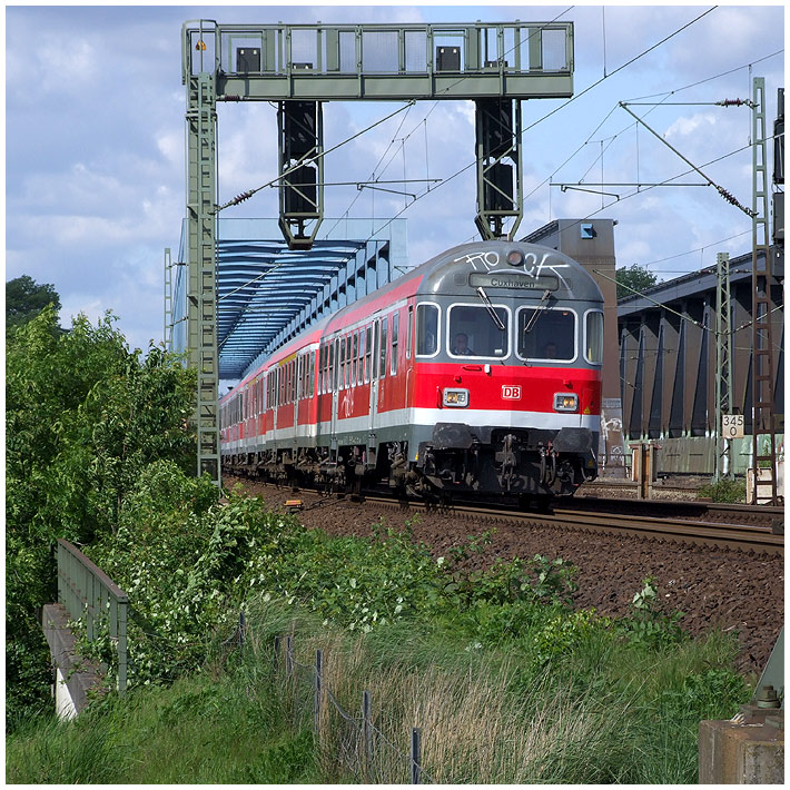 RB nach Cuxhaven Steuerwagen voraus auf den Süderelbbrücken. |