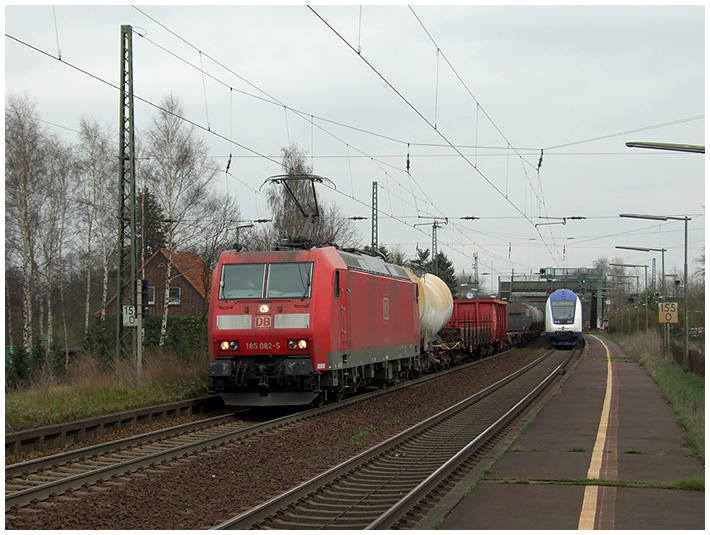 185 082 mit einem bunt gemischten Güterzug Richtung Maschen |
