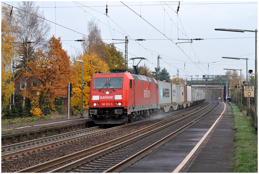 15:00 - 185 223 Richtung Maschen bremst Sandunterstütz im Hp Ashausen zum Halt zeigenden Signal ab. |