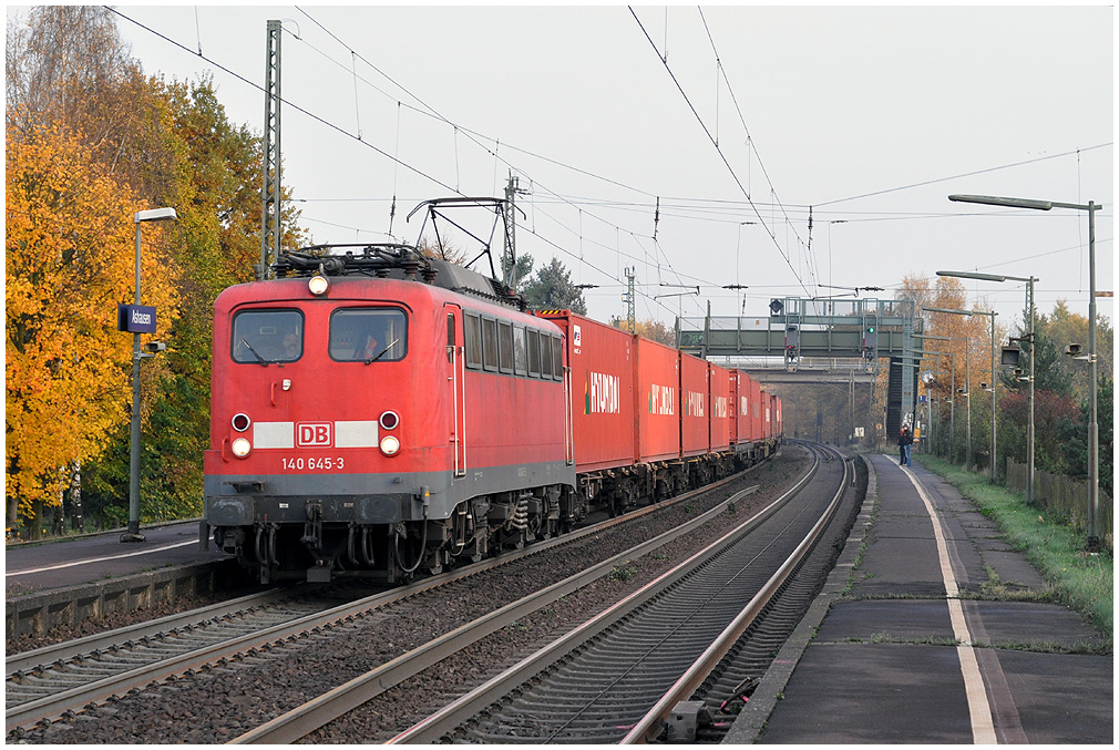 15:59 - 140 645 mit ebenso knallrotem Containerzug in die Gegenrichtung nach Maschen. |