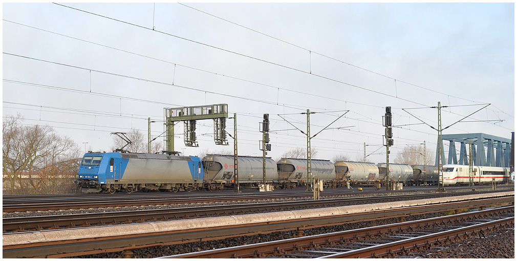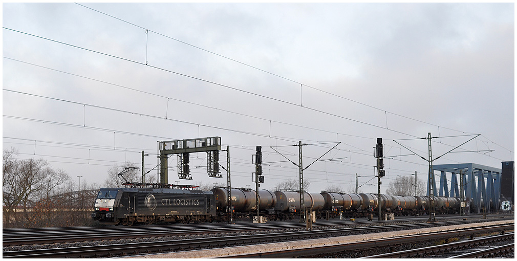 09:27 - CTL Logistics ES 64 F4-028 mit einem Kesselwagenzug von Hohe Schaar hat die Süderelbbrücken gerade überquert. |